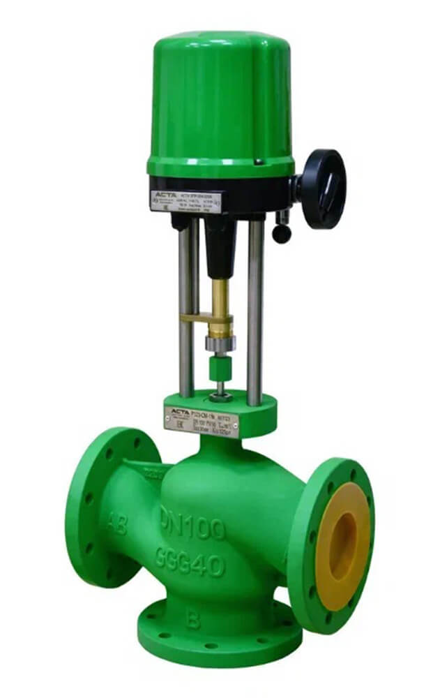АСТА Р323 ТЕРМОКОМПАКТ — трехходовой регулирующий клапан облегченной конструкции, управляемый электрическим приводом, предназначенный для точного дистанционного смешивания и разделения рабочей среды.