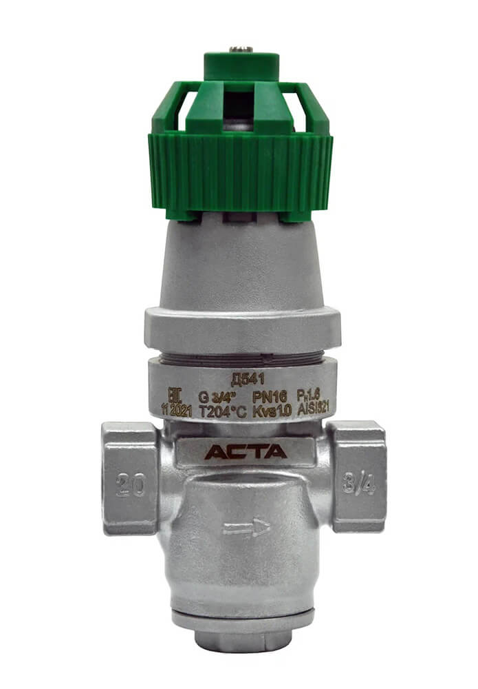 АСТА Д541 — редукционный клапан прямого действия, предназначен для автоматического поддержания заданного выходного давления рабочей среды. Принцип действия основан на уравновешивании силы упругой деформации настроечной пружины и силы, создаваемой разностью давлений на сильфонном приводе.