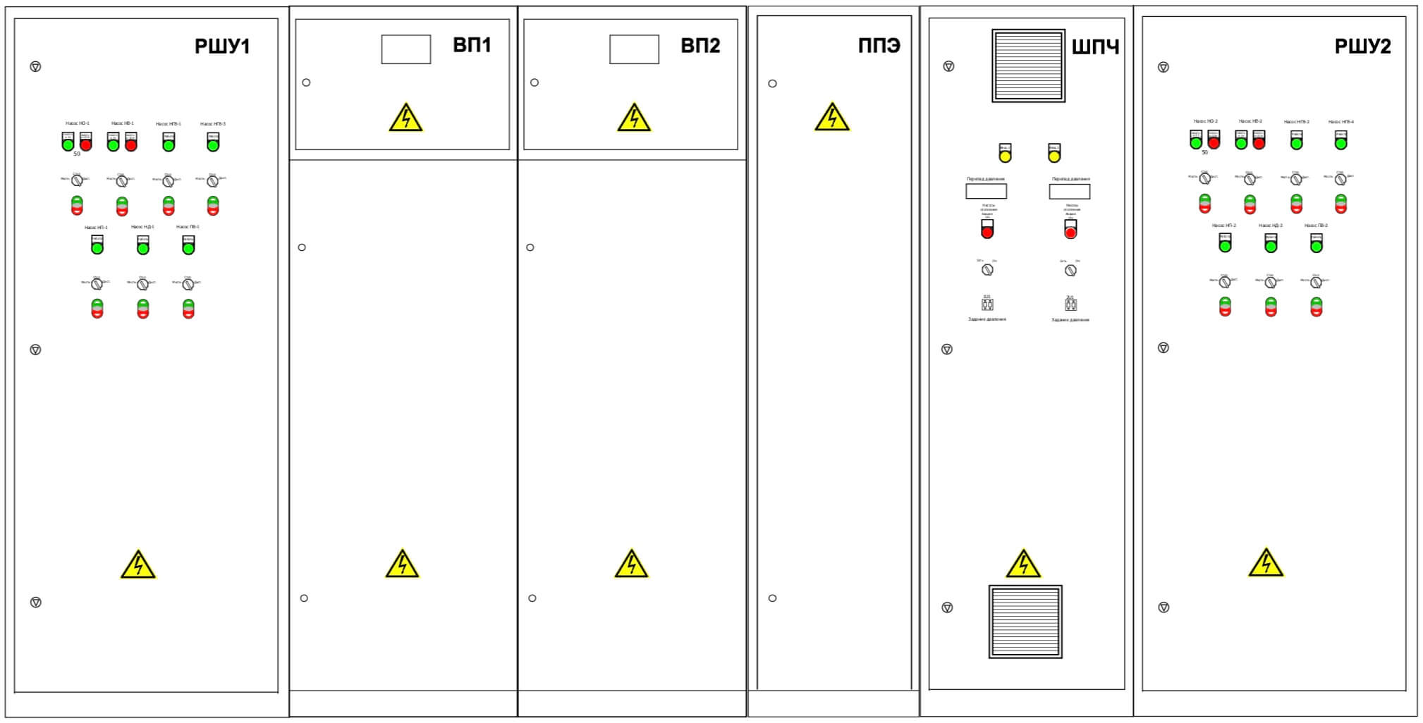 - гибкую настройку частоты вращения двигателей с помощью частотных преобразователей, что позволяет оптимизировать работу насосного оборудования.
