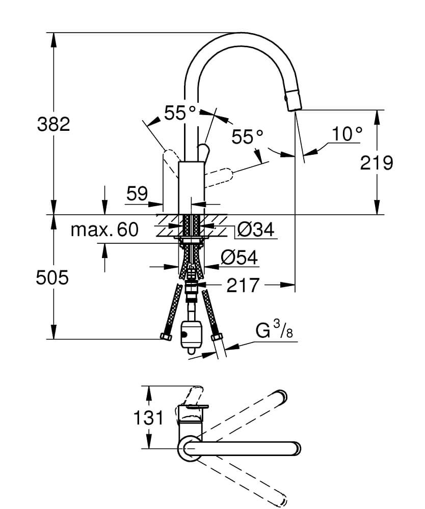 GROHE Eurostyle Cosmopolitan faucets are engineered to look beautiful and functional at the same time, delivered by German engineering excellence. The range of rotation of this mixer is 360˚, which is ideal for kitchens with large or double sinks, as well as for island kitchens. The high spout is great for filling large containers, while the pull-out two-spray spray can help raise your kitchen