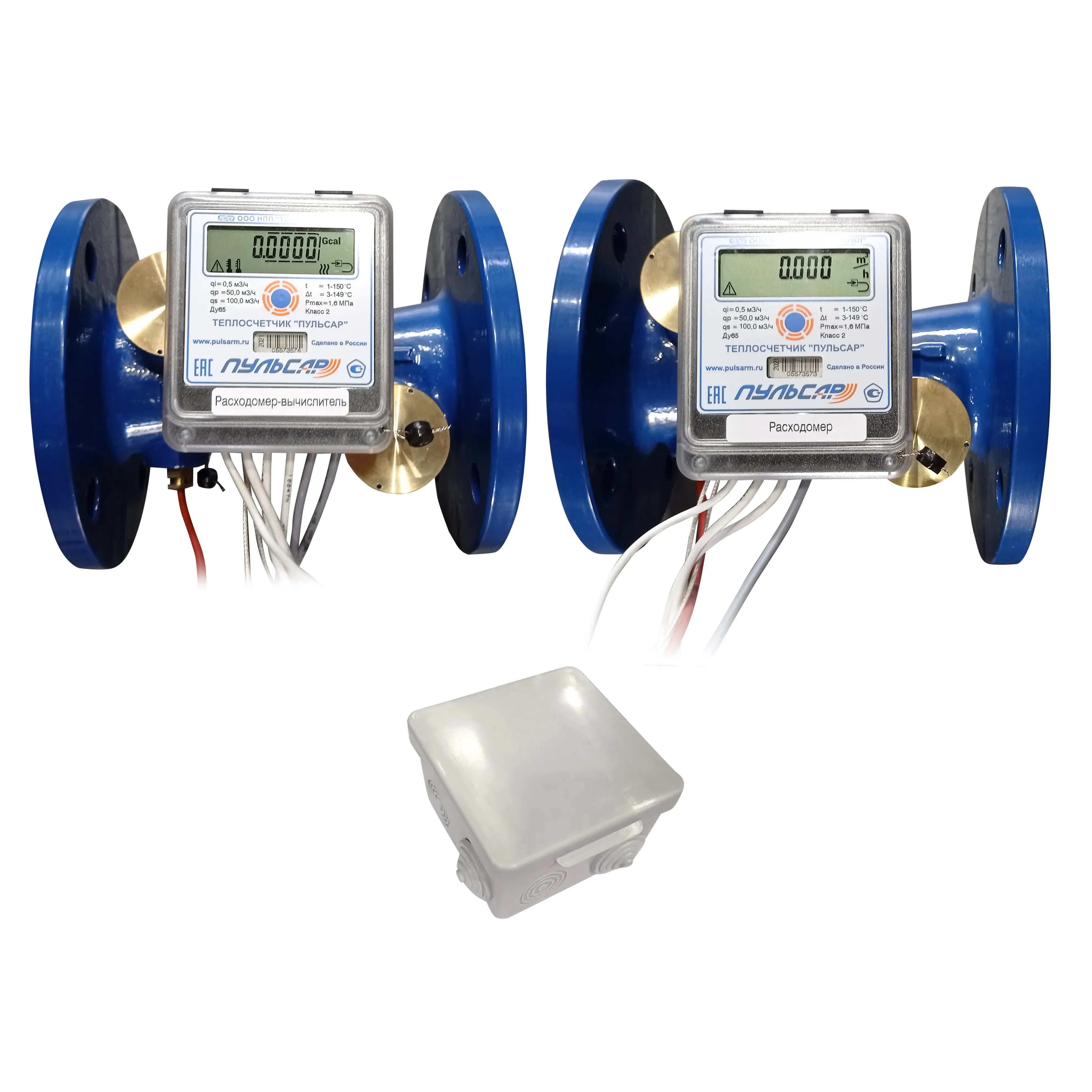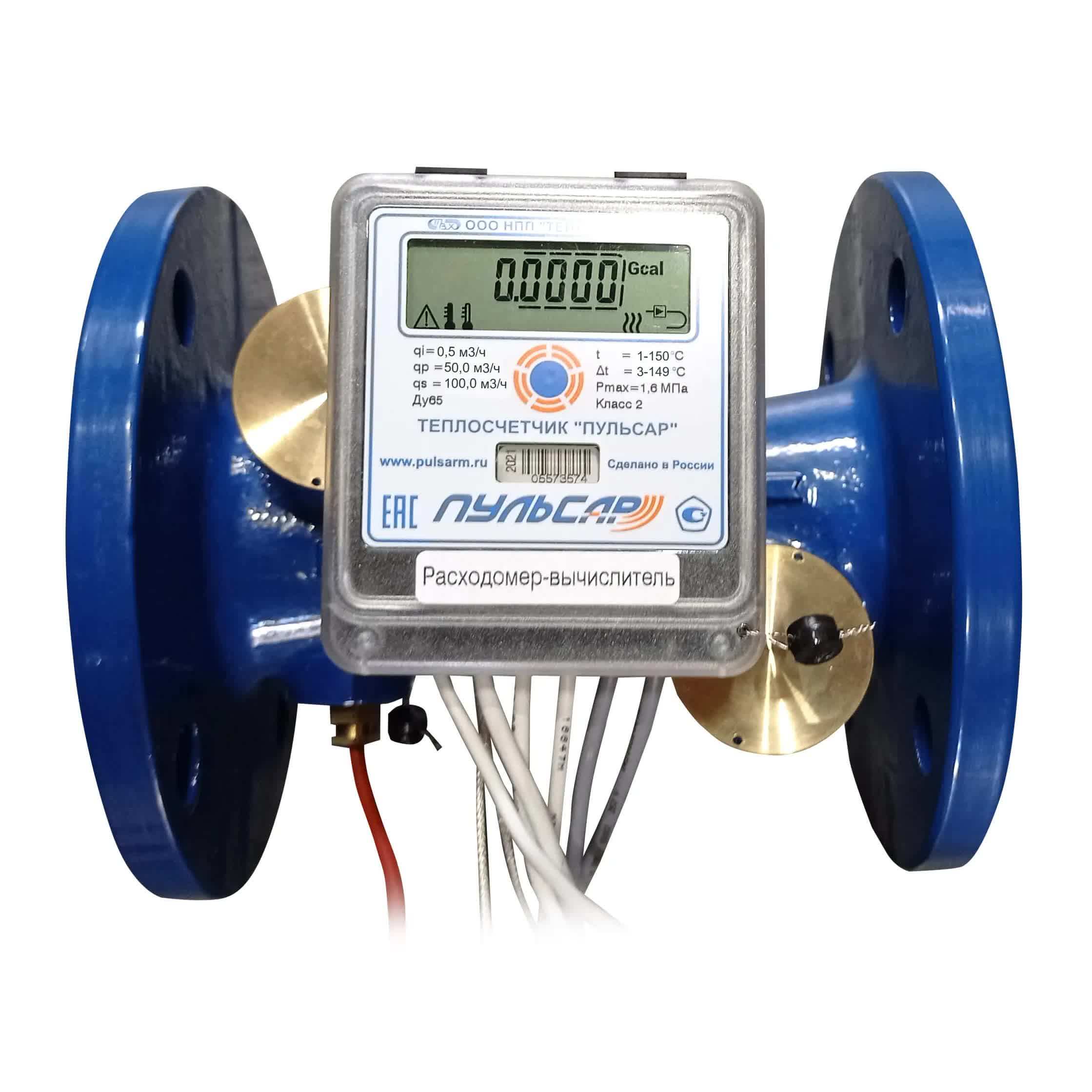 The principle of operation of the heat meter consists in the processing by the calculator of the measurement signals coming from the volumetric flow sensor (s), temperature sensors, gauge (sensors) of excess pressure, calculation and display on the indicator device of the calculator of the measurement results.