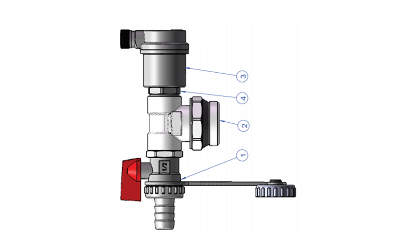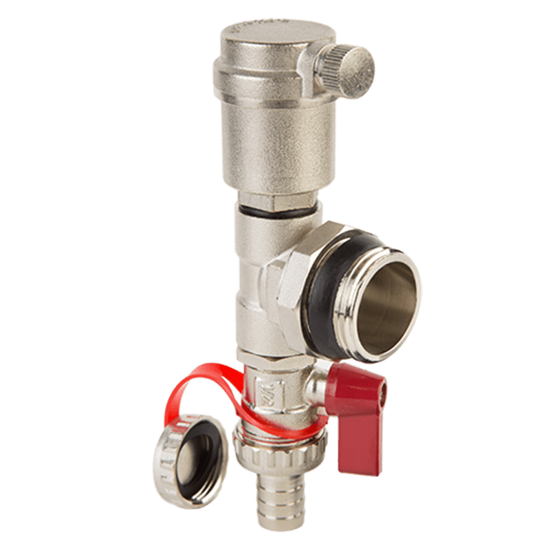 The end element is installed on the upper main manifold of the underfloor heating unit. Performs the function of automatic removal of gases from the system. As well as filling and draining the coolant from the underfloor heating system. The drain valve is completed with an additional cap.