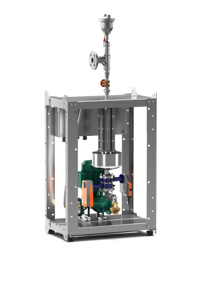 Fully automatic, compact particle separator, supplied in Plug & Play version, easy to install. The system consists of the following mechanical and hydraulic components: pump, separator (including particle collection chamber), automatic flushing device, venting device, SC control unit to control the pump and flushing device. The system is placed on site and secured to the floor. The connections to the suction and pressure connections as well as the electrical connection to the network are provided by the customer. Emptying is automatic by parameterization of the control unit.