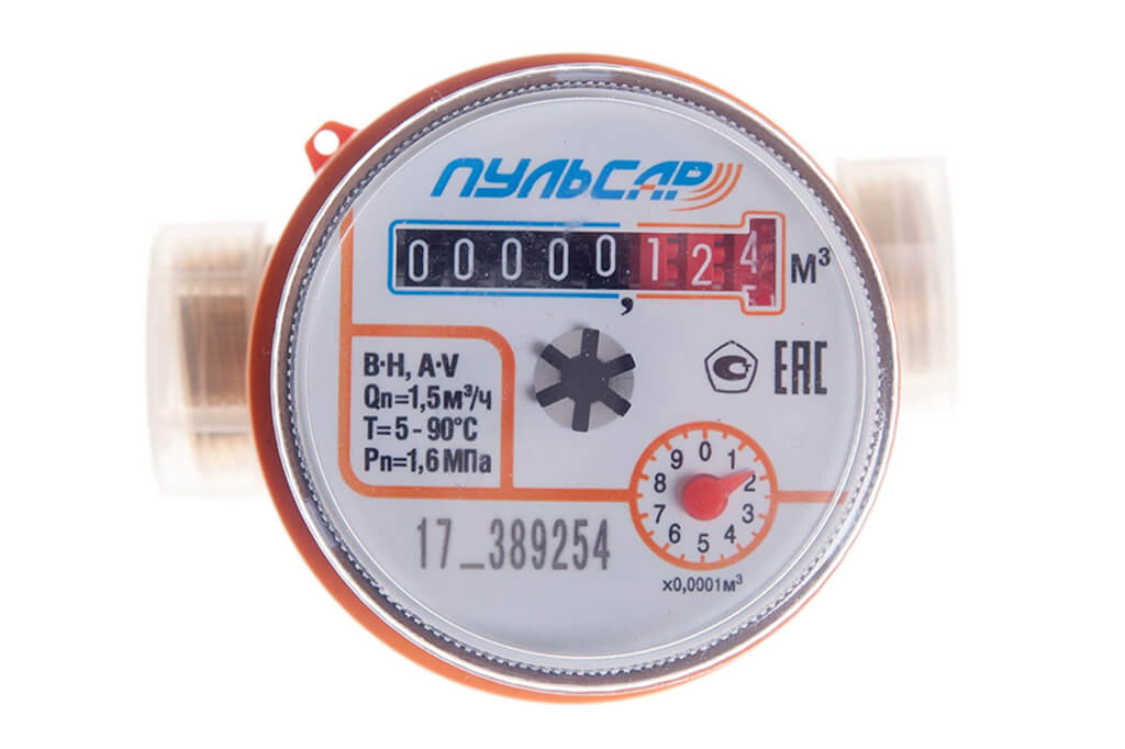 The single-jet water meter "Pulsar" with visual reading is designed to measure the volume of hot and cold drinking water according to SanPiN 2.1.4.1074-01 and network water flowing through the pipeline in cold and hot water supply systems. The data is displayed on the front panel of the computing mechanism. To read them, direct access to the counter is required.