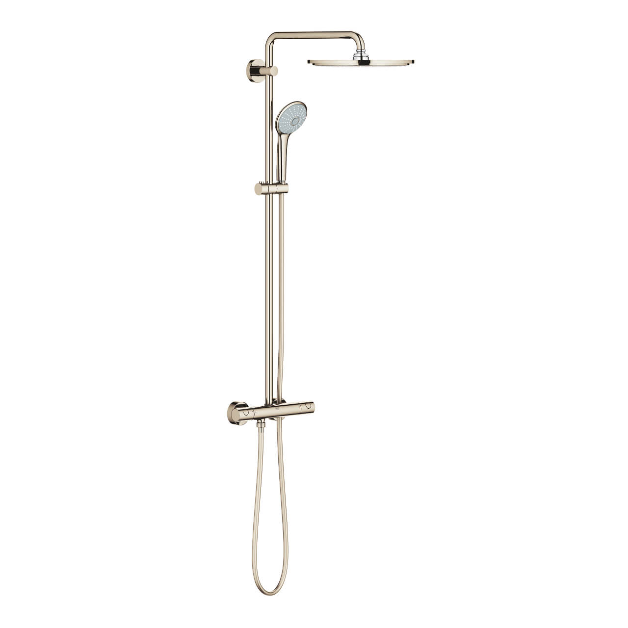 Precision is at the heart of the GROHE Euphoria XXL shower system philosophy with its clear, modern design and innovative features. The Rain spray in the Euphoria Cosmopolitan 310 mm overhead shower will relieve any build-up of stress. GROHE DreamSpray technology ensures the same flow from every shower nozzle. The shower arm swivels 180˚ for maximum comfort. The Euphoria 110 mm Massage hand shower includes 3 different spray modes: gentle Rain, water-saving SmartRain and revitalizing Massage. GROHE Turbostat technology ensures that the water temperature remains constant regardless of pressure surges, and
