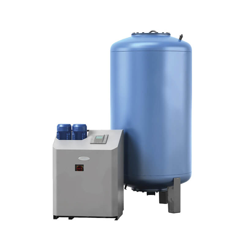 Точное поддержание давления ± 0.2 бар. 2 насоса. 1 перепускной клапан для дегазации и поддержания давления. 1 перепускной клапан для поддержания давления при пиковой нагрузке. 1 электромагнитный клапан и 1 водосчетчик для подпитки. Изоляция для защиты от образования конденсата.