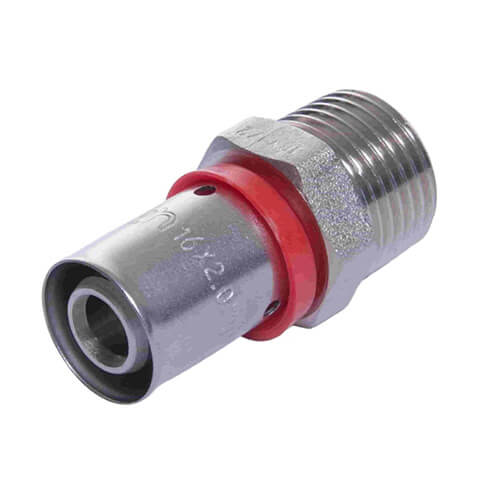 Пресс-фитинг с переходом на наружную резьбу предназначен для создания неразъемного соединения металлополимерных или РЕХ-труб с запорной арматурой или другими деталями трубопроводов с внутренней резьбой.