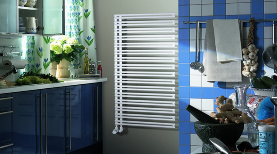 Радиатор Ratea имеет простую и вместе с тем нетиповую конструкцию. Вертикальные конвекторы расположены с одной стороны, благодаря чему достигнута возможность легко вешать полотенце.