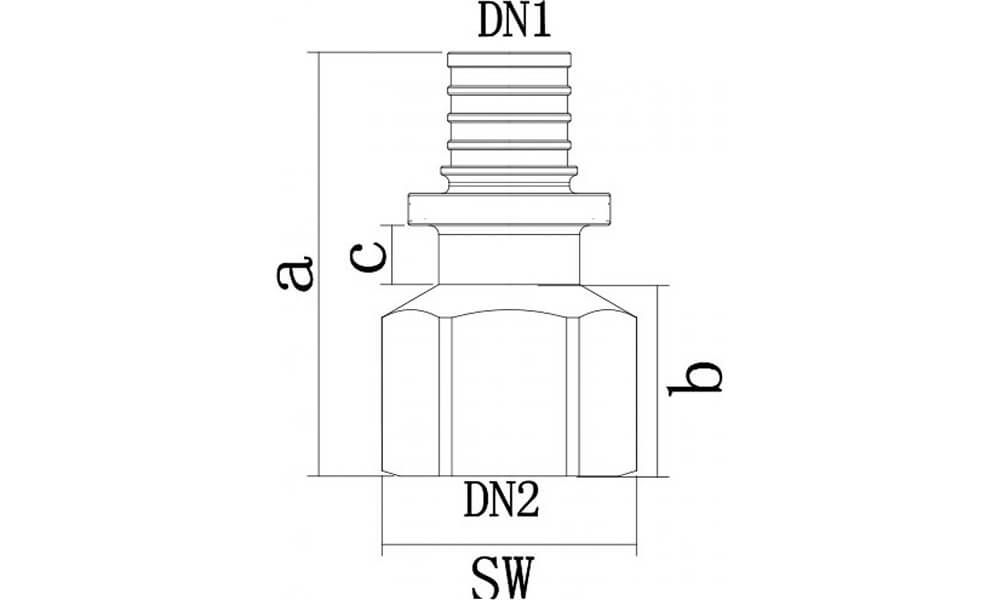 | Диаметр | DN1, мм | DN2 | a, мм | b, мм | c, мм | SW, мм | Артикул |