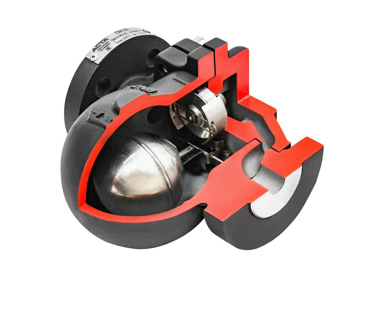 АСТА ПМ ТЕРМОКОН — механический поплавковый конденсатоотводчик, предназначенный для эффективного отвода конденсата из паровых линий. Принцип действия основан на разности плотности пара и конденсата. При наполнении корпуса конденсатом, полый поплавок всплывает и открывает выпускной клапан. Неконденсируемые газы отводятся через встроенный в верхнюю часть корпуса термостатический воздухоотводчик. Преимущественно применяется для дренажа паропроводов, теплообменного оборудования, паровых регистров, калориферов, автоклавов, варочных котлов, сушильных цилиндров и др.
