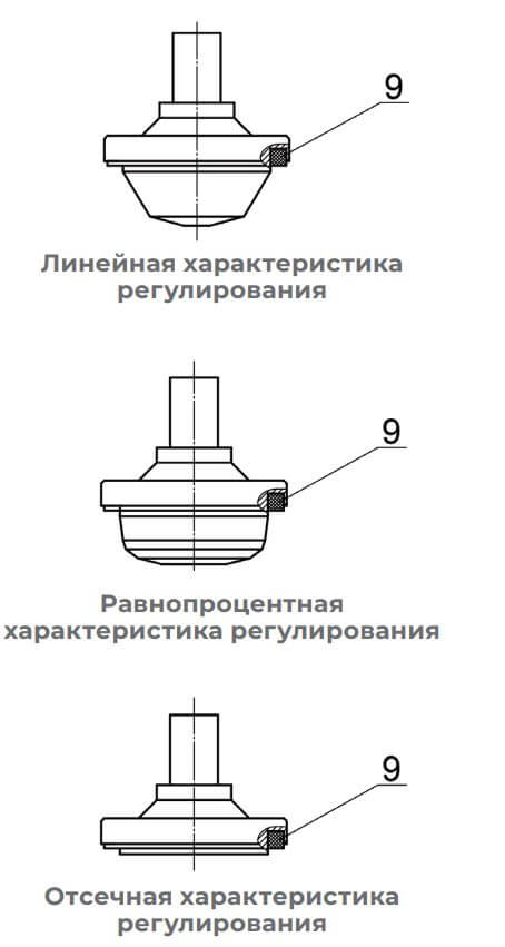 | Характеристики регулирования | Линейная / равнопроцентная / отсечная | ||