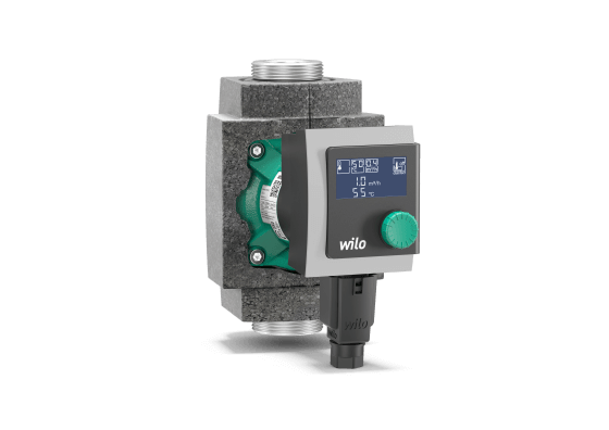 Циркуляционный насос с мокрым ротором с резьбовым подсоединением, электронно-коммутируемым двигателем, устойчивым к токам блокировки, и встроенным электронным устройством регулирования мощности.