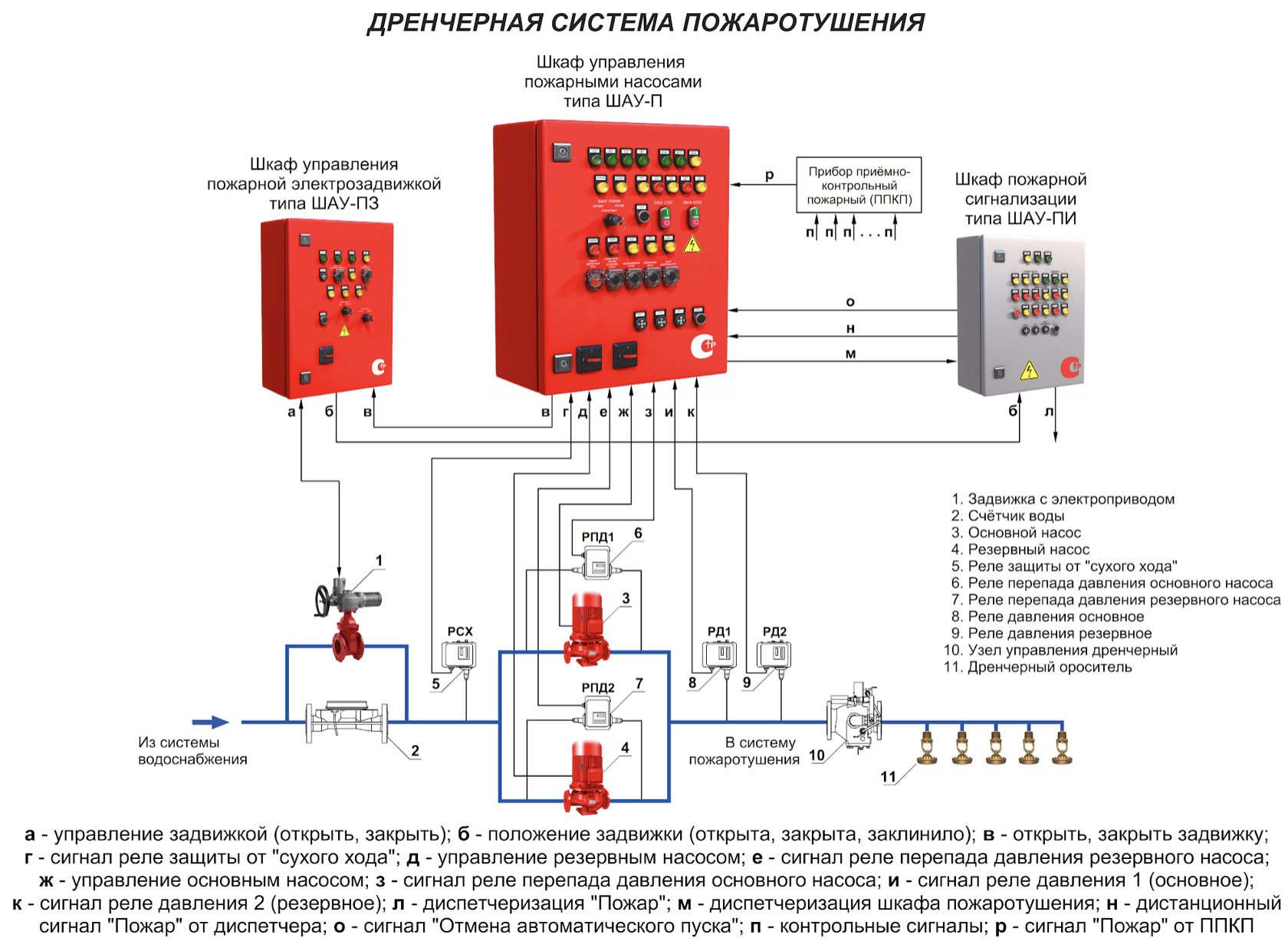 Шкафы управления насосами соответствуют техническому регламенту о требованиях пожарной безопасности (ФЗ от 22.07.2008 № 123‑ФЗ, ГОСТ Р 53325‑2012). Реализованы следующие функции: