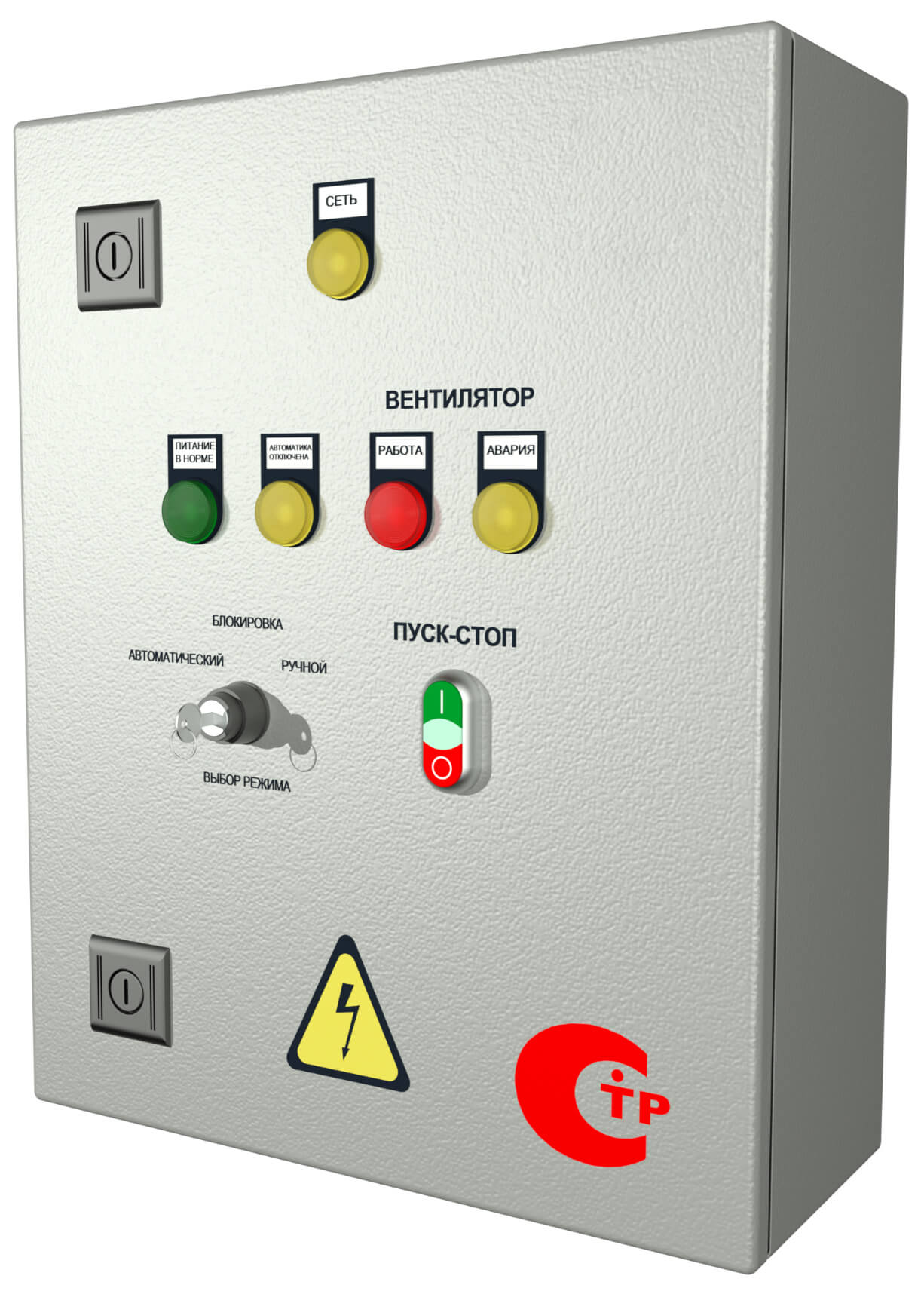 В данном режиме оператор осуществляет прямое управление вентиляционной установкой через интерфейс шкафа. Для запуска и остановки оборудования используются кнопки «Пуск/Стоп», размещённые на панели. Состояние системы в реальном времени отображается посредством индикаторной панели, предоставляющей актуальную информацию о работе оборудования.