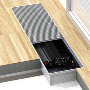 Канальные конвекторы Aquilo F4C предназначены для монтажа в полах помещений и могут использоваться как для их обогрева, так и для охлаждения. Нагревательным или охлаждающим элементом является медно-алюминиевый теплообменник, окрашенный в черный цвет, установленный в ванной из нержавеющей стали, также окрашенной в черный цвет. Конвекторы Aquilo F4C оснащены бесшумными центробежными вентиляторами, которые установлены в ванной рядом с теплообменником, количество этих вентиляторов зависит от длины теплообменника. Благодаря им обеспечивается принудительная циркуляция воздуха и, как следствие, большая производительность при нагреве или охлаждении. Вентиляторы приводятся в движение двигателями, рассчитанными на напряжение 12 В. Сверху конвектор закрыт поперечной декоративной решеткой, изготовленной из предлагаемого производителем материала, которая заказывается отдельно. Подключение конвектора к четырехтрубной системе отопления или охлаждения выполняется с помощью четырех патрубков с внутренней резьбой G ½ ". Обязательное электрическое оснащение, которое заказывается отдельно, состоит из соответственно подобранного трансформатора (на штукатурку либо под штукатурку), а также настенного регулятора, управляющего оборотами вентилятора.